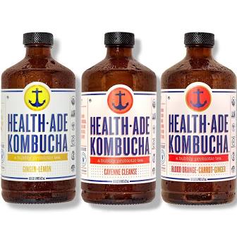 コンブチャは、腸内環境を整えるプロバイオティックス、ビタミンB群、酵素、ポリフェノール化合物やグルカル酸、サッカリン酸を含みます。グルカル酸は肝機能の改善にも効果があるとされデトックス効果が、サッカリン酸は抗酸化作用が高く免疫力を上げる効能が期待できます。栄養価はブランドによって異なるけれど、上の写真のHEALTH-ADEはボトル1本(473ml) で70キロカロリーと控えめで、炭水化物は14g (糖質10g)。